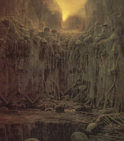 Sú tomu dva roky od šokujucej smrti môjho najoblúbenejšieho maliara súčasnoti. Poľský maliar Zdislaw Beksinski sa narodil roku 1929 v Sanoku a svoj život nemal ako väčšina umelcov vôbec ľahký. Jeho tvorba bola poznačená zverstami druhej svetovej vojny ale i osobnými stratami. Žena Zofia zomrela v roku 1998 no ešte horší dotyk osudu pocitil o rok neskôr keď na vianoce jeho syn spáchal samovraždu. Vyštudoval architektúru v Krakowe roku 1955 s ktorou i začínal svoju umeleckú cestu, zaujmavé tvorby pricházdaju roku 1960, ale génius doby sa prejavuje až od roku 1970 svojim temným artom. Beksinski sa časom stal znamou osobnosťou nielen na polskej ale i svetovej scéne. Jeho tvorba je naplnená silnou a nepomýlitelnou atmosférou, ktorá často naberá hororové prvky.